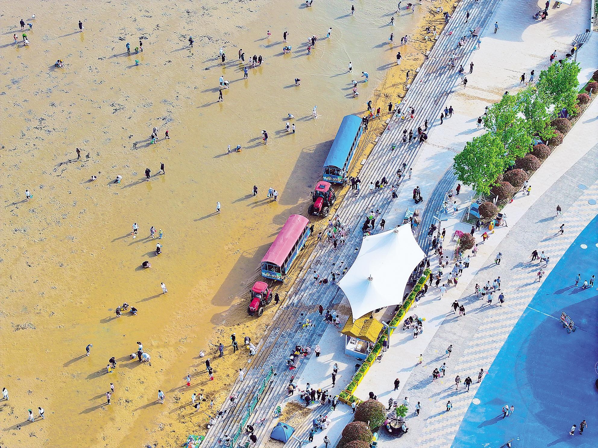 “五一”假期,我國旅游消費熱度再創新高。全國國內出游3.14億人次,同比增長6.4%;國內游客出游總花費1802.69億元,同比增長8%。圖為山東日照的劉家灣趕海園推出的“龍王獻寶”活動,通過每日向灘涂投放3000斤野生蛤蜊,為游客打造新型趕海體驗。