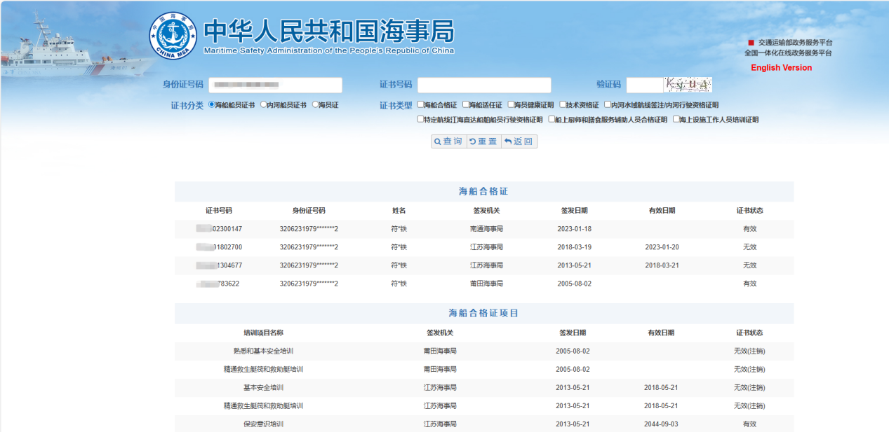 Ⅶ.“鱘航”用工主體具有船員服務資質,具有線下匹配船員的能力,同時通過海事主管部門官網船員資質查詢功能和“鱘航”平臺推薦的船員進行資質比對,在保障船員用工資質真實性的同時精準匹配企業的需求。(見圖7;圖8;圖9)