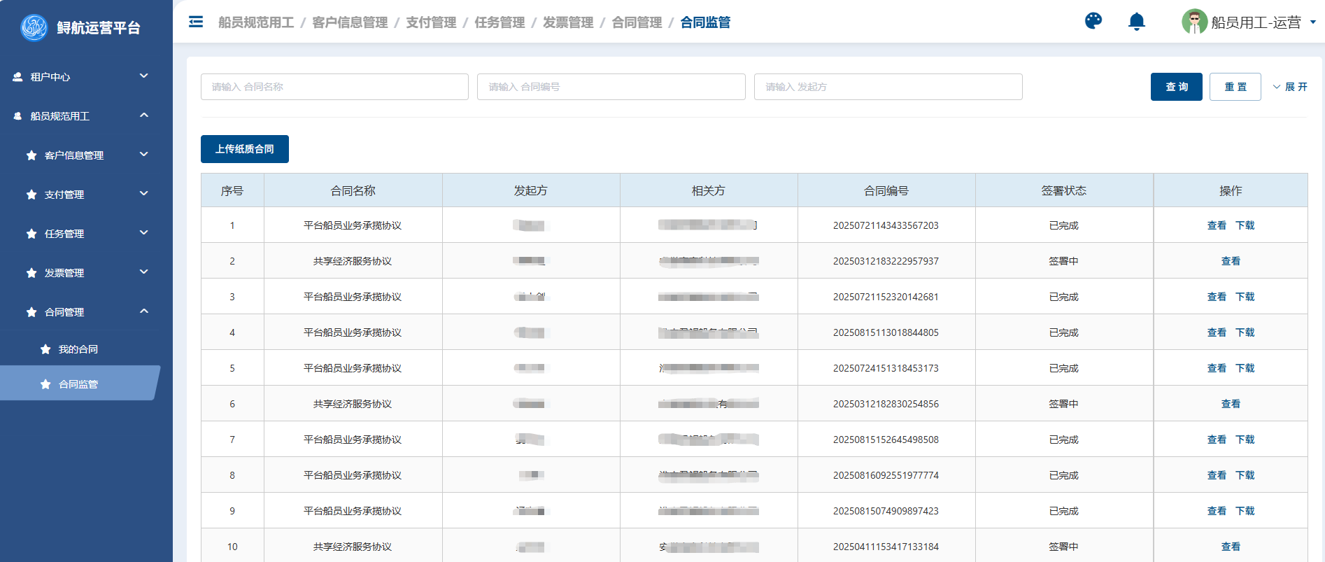 在船員靈活用工模式中,靈活用工平臺企業與船員、船企分別簽訂承攬協議/和或勞務合同,并且根據實際業務提供標準化的合同模板,明確服務內容、報酬標準和權責劃分,并通過區塊鏈技術存證,確保合同簽訂的真實性與不可篡改性。