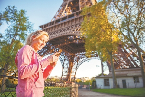 法國巴黎,一位女士通過智能手機使用社交媒體。