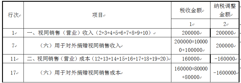 企業(yè)所得稅方面,調(diào)增視同銷售收入100000元,調(diào)增視同銷售成本80000元,調(diào)增20000元;視同銷售后,捐贈(zèng)支出會(huì)計(jì)金額為80000元,稅收金額為100000元,調(diào)減20000元;合計(jì)納稅調(diào)整為0。全額稅前扣除捐贈(zèng)支出100000元。