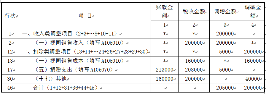 A105000《納稅調(diào)整項(xiàng)目明細(xì)表》