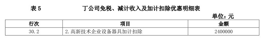丁公司填報《資產折舊、攤銷及納稅調整明細表》(A105080)和《免稅、減計收入及加計扣除優惠明細表》(A107010)見表4和表5。