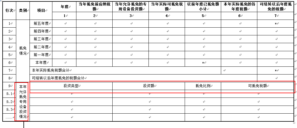 ②新表“本年允許抵免專用設備投資情況”填報納稅人本年按照稅收政策規定可享受抵免優惠的專用設備投資類型、投資額、抵免比例和可抵免稅額。