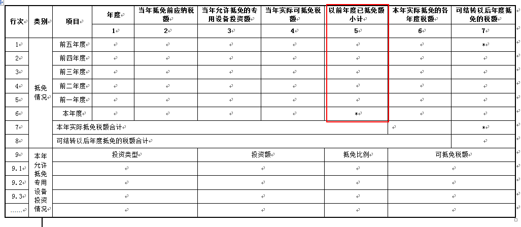 ②新《稅額抵免優惠明細表》中進行了簡化,在第5列“以前年度已抵免額小計”填報納稅人以前年度已抵免稅額合計金額。
