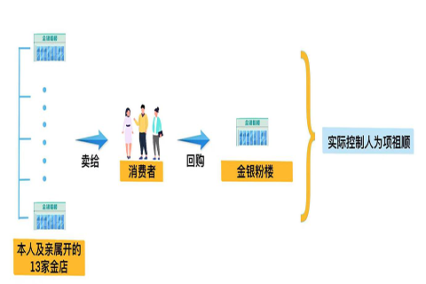 檢查人員進(jìn)一步核實(shí)確認(rèn),包括金粉銀樓在內(nèi)的14家店鋪雖登記主體有所不同,卻存在“統(tǒng)一回購(gòu)、共用收銀系統(tǒng)、同一會(huì)員管理”的情況,顯示出明顯關(guān)聯(lián)性。在此基礎(chǔ)上,經(jīng)依法調(diào)取銀行流水分析比對(duì),證實(shí)包括金粉銀樓在內(nèi)的14家店鋪資金最終流向項(xiàng)祖順,形成了由其實(shí)際控制的關(guān)聯(lián)經(jīng)營(yíng)網(wǎng)絡(luò)。