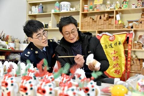 臨近新春佳節(jié),國家稅務(wù)總局蘭陵縣稅務(wù)局開展“福啟新歲 稅暖蘭陵”稅費優(yōu)惠宣傳活動,組織青年稅務(wù)人員走進蘭陵縣小郭泥塑有限公司,向省級非物質(zhì)文化遺產(chǎn)“小郭泥塑”傳承人劉建剛,講解其適用的小規(guī)模納稅人增值稅、小微企業(yè)所得稅和“六稅兩費”減免等各項稅費優(yōu)惠政策,助力非遺添彩年味。(郭勇 張府 攝)