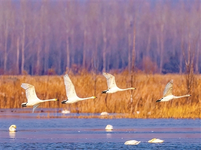 近期,在河南三門峽市天鵝湖國家城市濕地公園內(nèi),首批400余只大天鵝飛臨黃河岸畔淺灘濕地。作為全國主要的大天鵝越冬棲息地之一,每年10月中旬至次年3月,約有1萬多只來自蒙古國和西伯利亞的大天鵝遷徙至此越冬。除天鵝外,公園內(nèi)還有綠頭鴨、鸕鶿等300多種鳥類,吸引了眾多游客及攝影愛好者前來觀看和拍照。依托“天鵝經(jīng)濟(jì)”,當(dāng)?shù)孛磕杲哟慰统?000萬人次,年旅游收入超百億元,輻射帶動(dòng)“食、宿、行、玩”產(chǎn)業(yè)蓬勃發(fā)展。 國家稅務(wù)總局河南三門峽經(jīng)濟(jì)開發(fā)區(qū)稅務(wù)局組建專項(xiàng)服務(wù)團(tuán)隊(duì),走訪濕地公園周邊的酒店、餐飲、文旅等經(jīng)營主體,圍繞發(fā)票管理、稅費(fèi)政策享受等開展輔導(dǎo),引導(dǎo)企業(yè)依法申報(bào)納稅、開具發(fā)票,助力當(dāng)?shù)厣鷳B(tài)旅游經(jīng)濟(jì)發(fā)展。
