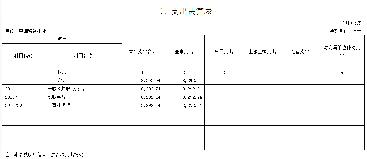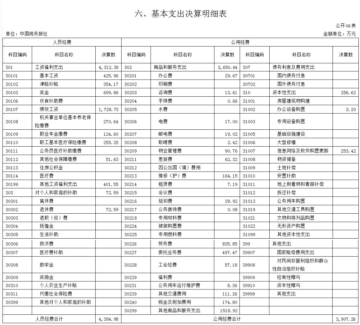2023年度,中國稅務(wù)報(bào)社本年支出合計(jì)8,292.24萬元,全部為基本支出。