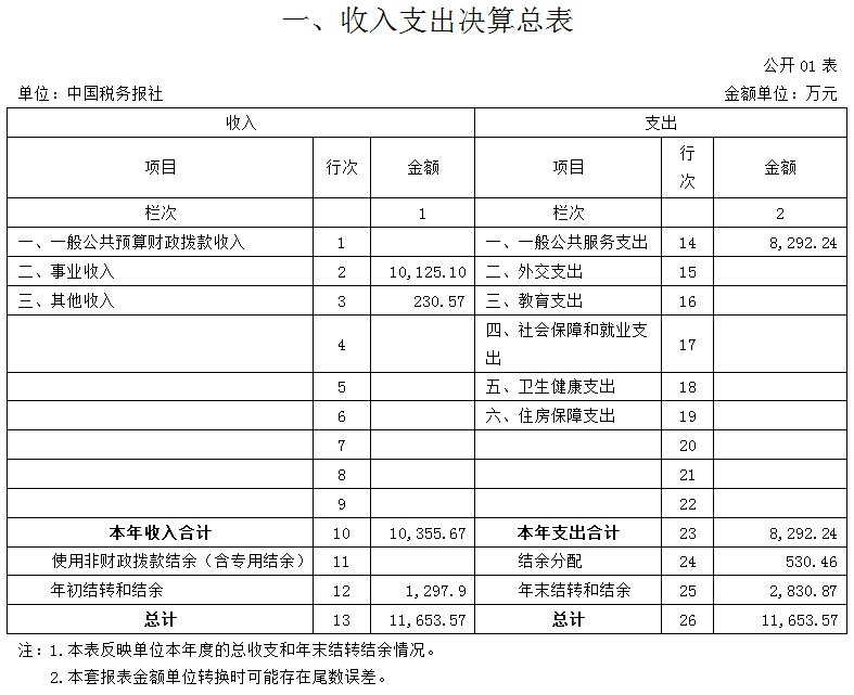 中國稅務(wù)報(bào)社2023年度收入總計(jì)11,653.57萬元,其中本年收入10,355.67萬元,與2022年度相比,收入合計(jì)增加53.93萬元,主要是本年度收到增值稅退稅收入較上年增加56.8萬元,收入具體情況如下: