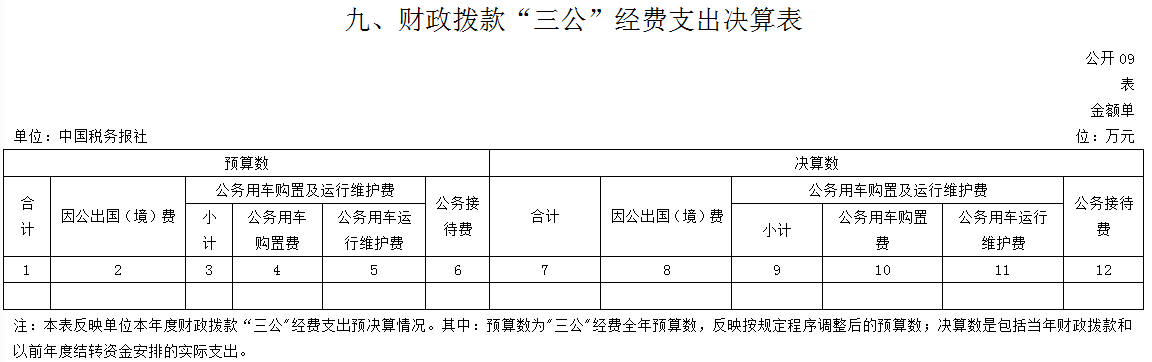 九、財(cái)政撥款“三公”經(jīng)費(fèi)支出決算表