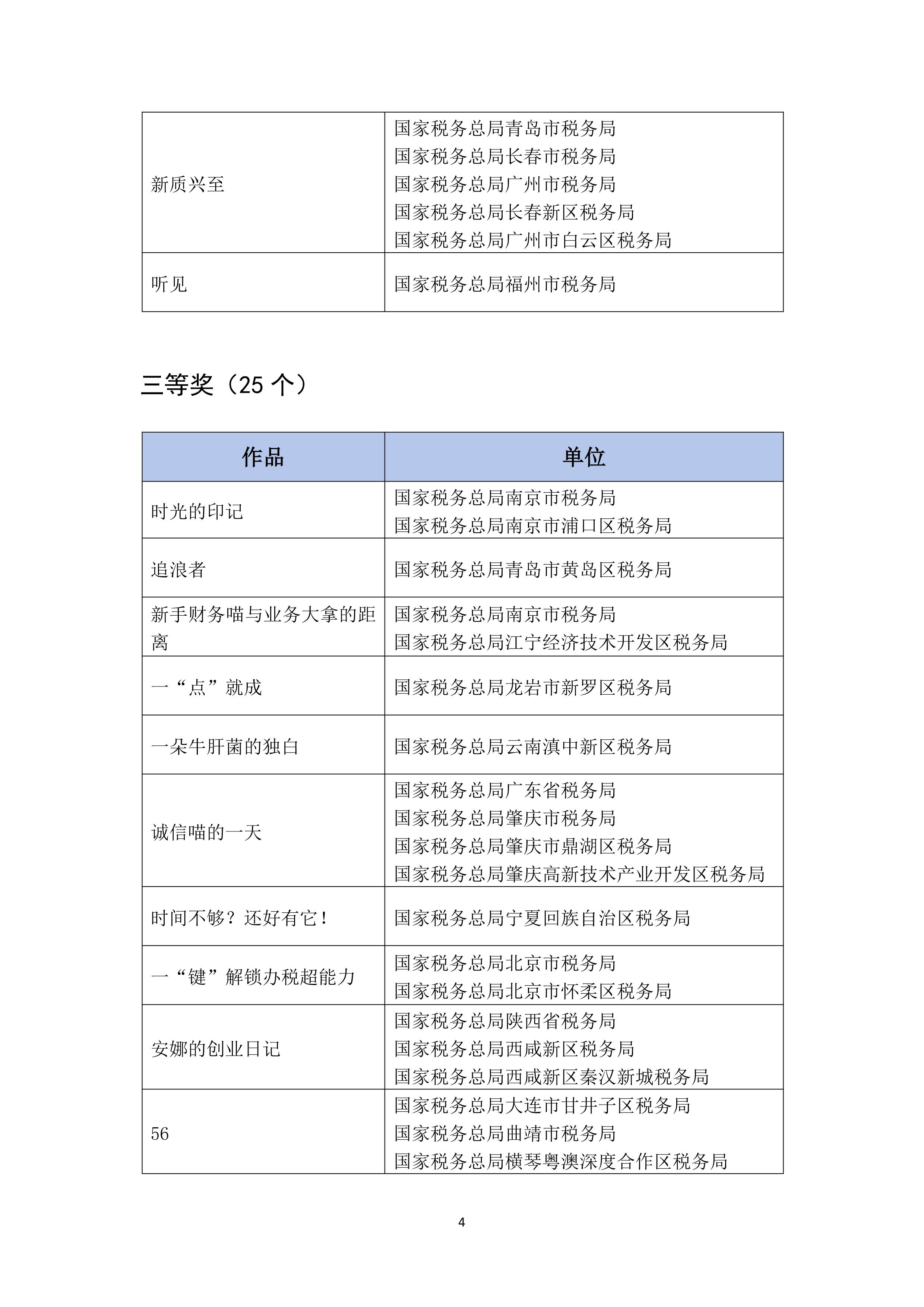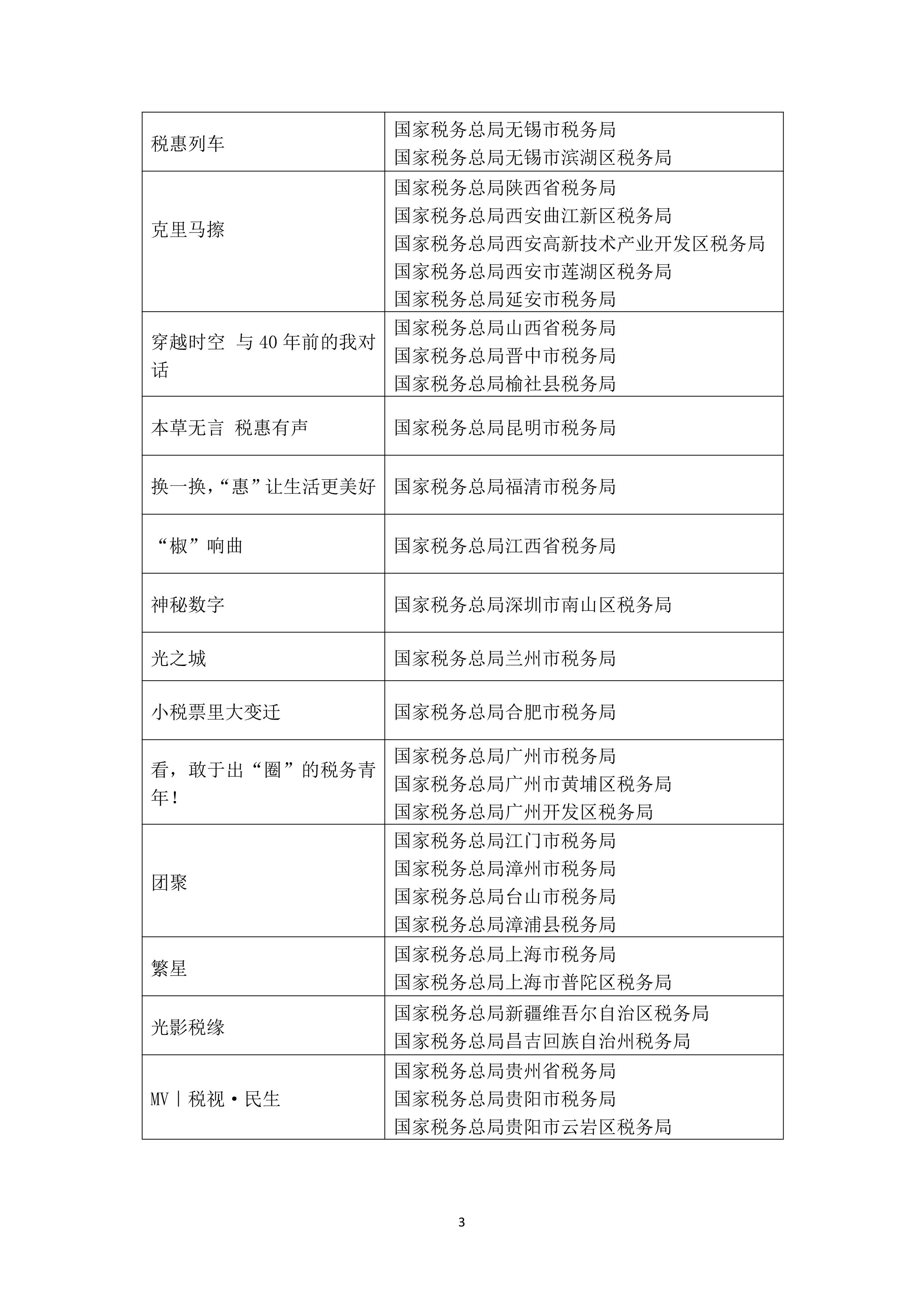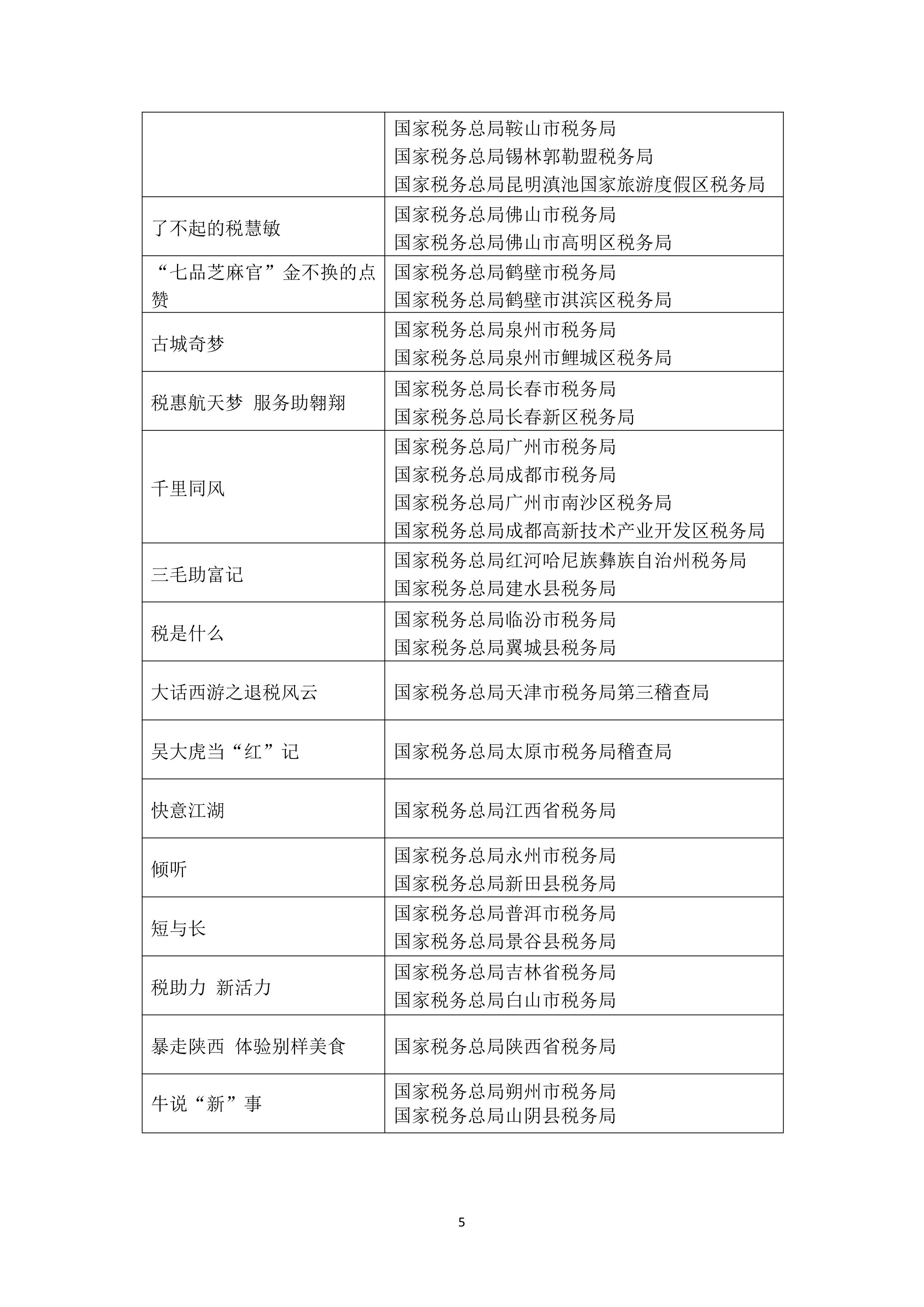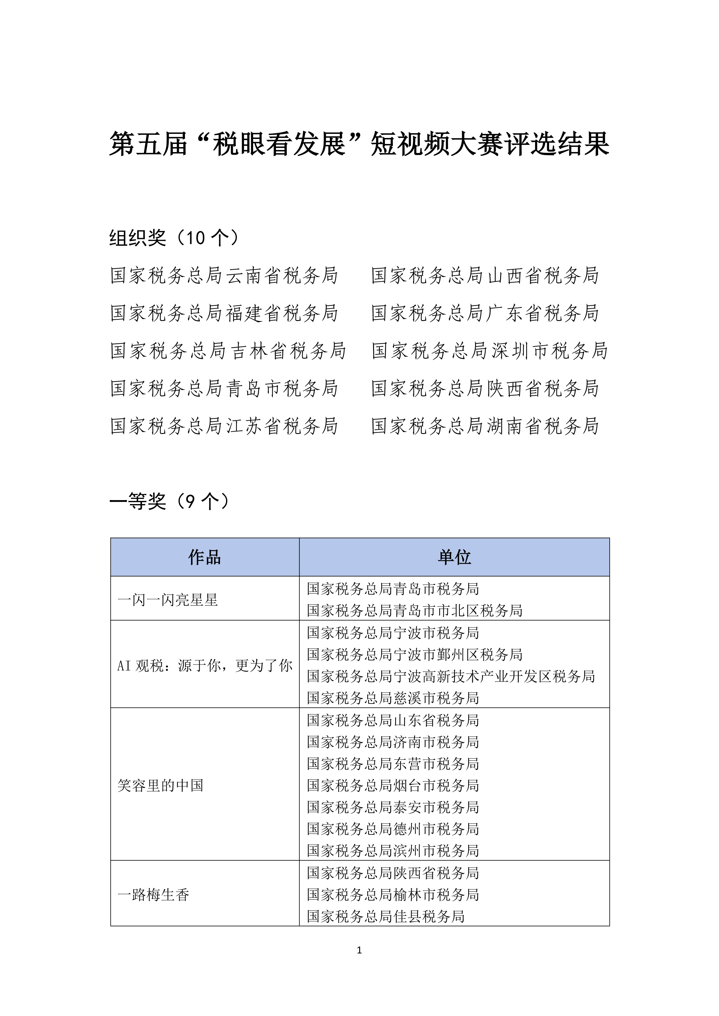 現對評選結果進行公示(見附件),歡迎社會各界監督。如有意見,請在公示期內向第五屆“稅眼看發展”短視頻大賽組委會反映。