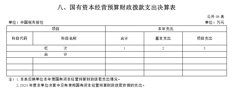中國稅務報社2024年度無一般公共預算財政撥款支出。