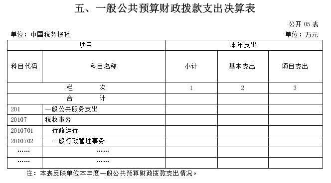 (四)基本支出:指稅務部門為保障機構正常運轉、完成日常工作任務而發生的人員支出和公用支出。