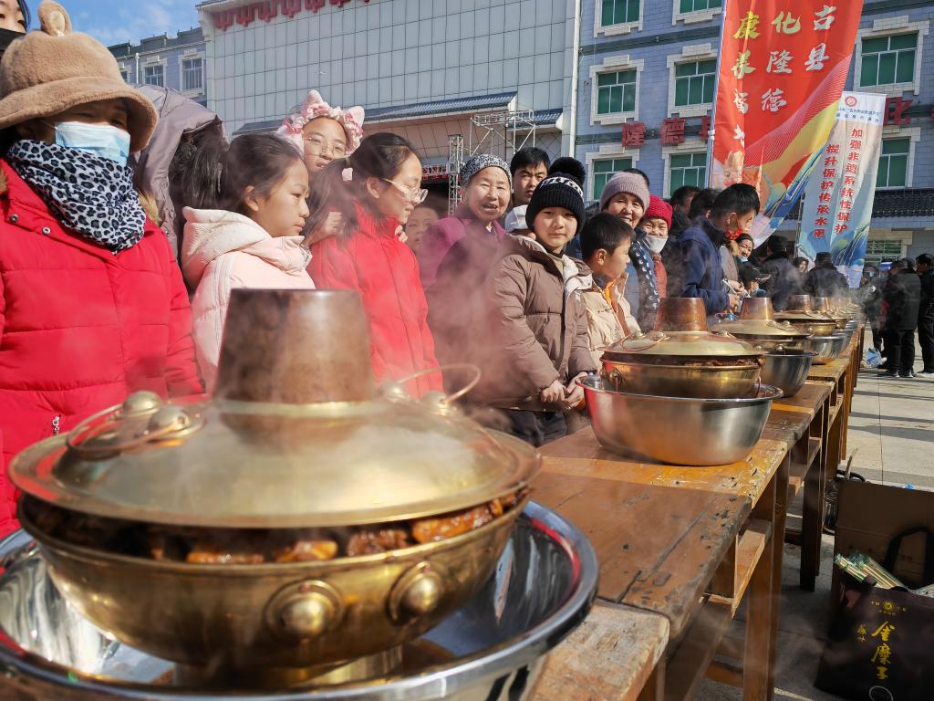 春官送福這一年俗在六盤山區(qū)有著悠久歷史。在隆德縣,春官又叫儀程官,通常走在社火隊(duì)前,給所到之處的人們送上新春祝福,人們也會(huì)準(zhǔn)備好暖鍋、油餅等“迎社火”。