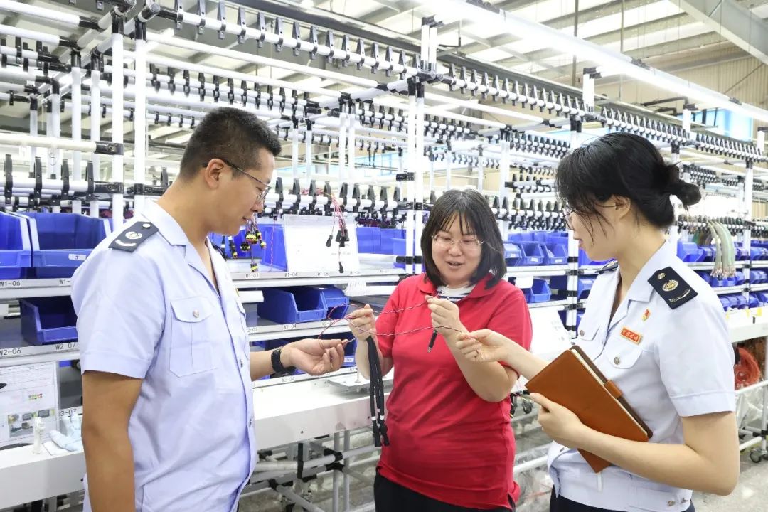 國家稅務總局白城市稅務局第一稅務分局稅務工作人員現場了解企業線束端子生產情況,并輔導企業享受研發費用加計扣除等相關稅費優惠政策。