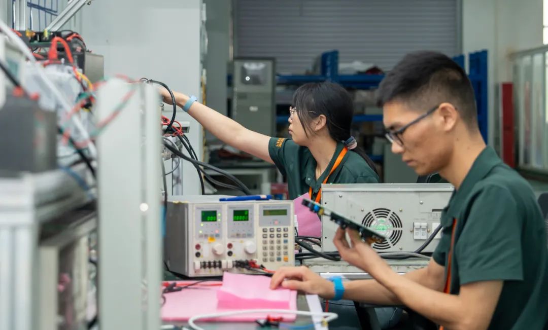 柏宜電氣工作人員在成品檢驗(yàn)區(qū)進(jìn)行產(chǎn)品出貨前檢測(cè)。