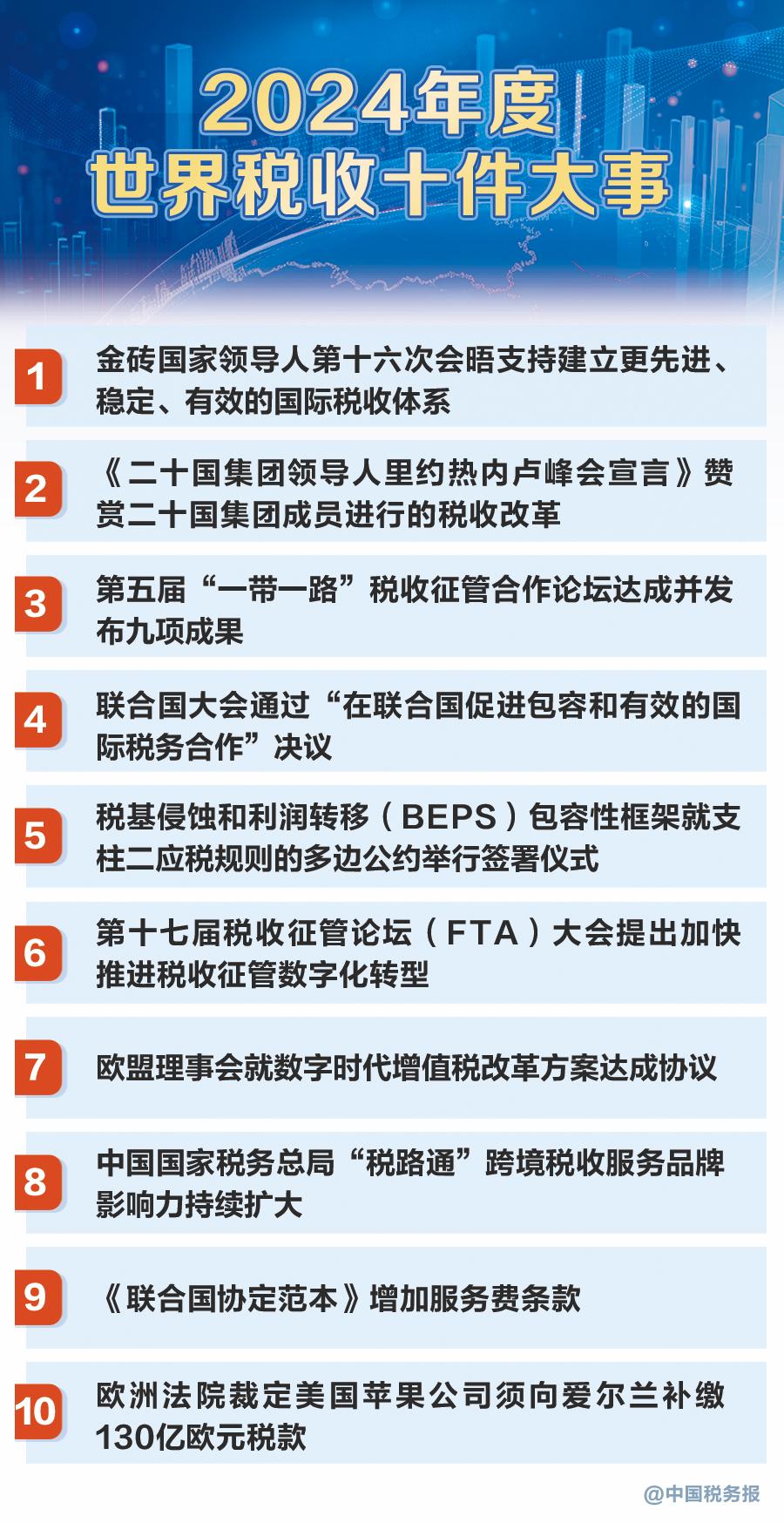 從2024年世界稅收十件大事的評選結果來看,有以下特點值得關注:
